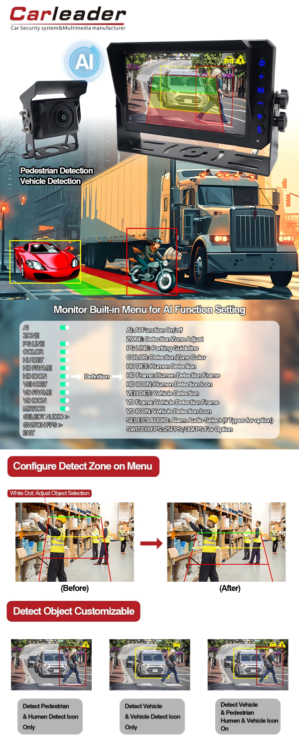 एआई वाहन पैदल यात्री डिटेक्शन मॉनिटर कैमरा सिस्टम