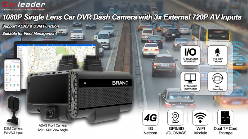 कार्लीडर4CH AI संचालित ADAS+DSM डैश कैमरा वीडियो आउटपुट को सपोर्ट करता हैयह एक उच्च प्रदर्शन वाला सिंगल-लेंस डीवीआर कैमरा है जिसे आधुनिक वाहन सुरक्षा और निगरानी आवश्यकताओं के लिए डिज़ाइन किया गया है। उन्नत ड्राइवर सहायता प्रणाली (एडीएएस) और ड्राइवर स्थिति निगरानी (डीएसएम) से सुसज्जित, यह डिवाइस ड्राइविंग सुरक्षा बढ़ाने के लिए व्यापक सुरक्षा और वास्तविक समय अलर्ट प्रदान करता है।